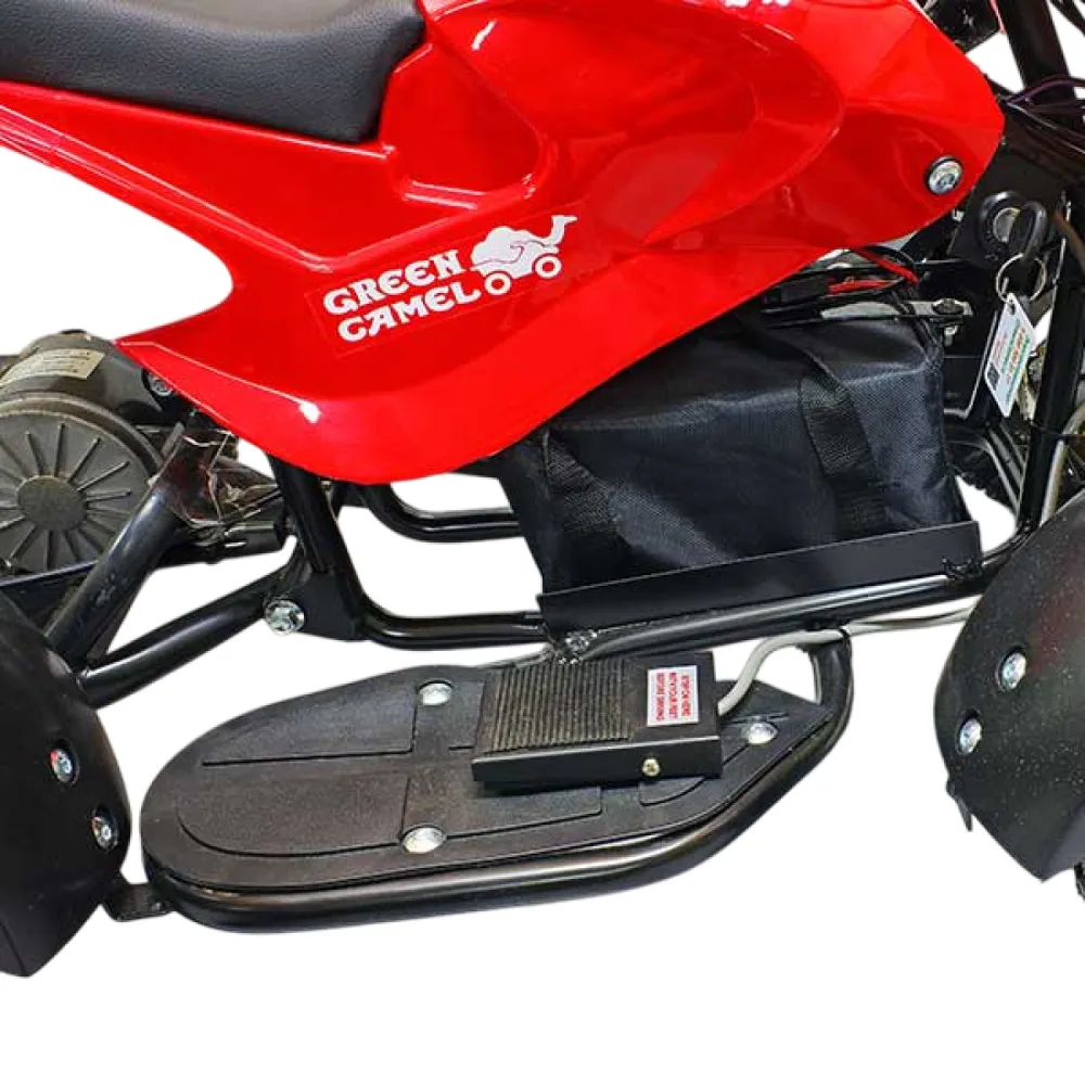 Квадроцикл GreenCamel Gobi K11 создан для малышей от 2 до 6 лет. Квадроцикл продуман до мельчайших деталей и безопасен для ребенка. Это практически точная копия взрослого и мощного квадроцикла. Он совсем небольшой и достаточно легкий. Выдерживает такой квадрацикл вес до 60 кг. Квадроцикл GreenCamel Gobi K11 оснащен спидометром. Также есть специальная педаль, чтобы ребенок мог самостоятельно нажимать и двигаться с места. Для безопасности ребенка квадроцикл оснащен так называемым родительским контролем, чтобы ребенок не разгонялся. Он имеет три уровня скорости. Максимальная скорость, которую может развить этот малыш, достигает 12 км/ч. На одном заряде можно проехать до 60 км. Сам заряд аккумулятора займет 7 часов времени. Кататься на таком квадроцикле можно и зимой и летом. Также квадроцикл оснащен удобным рулем, где расположены тормоза, которыми ребенок быстро научится пользоваться. Дизайн выполнен в ярких красных тонах. Для родителей в комплект входит руководство пользователя электротранспортом, где описаны все характеристики.