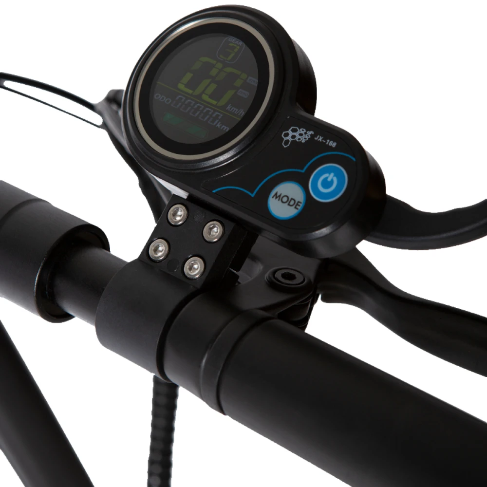 Модель оснащена максимальным функционалом, увеличивающим степень комфорта передвижения, позволяющим контролировать скоростные характеристики и степень заряда АКБ.