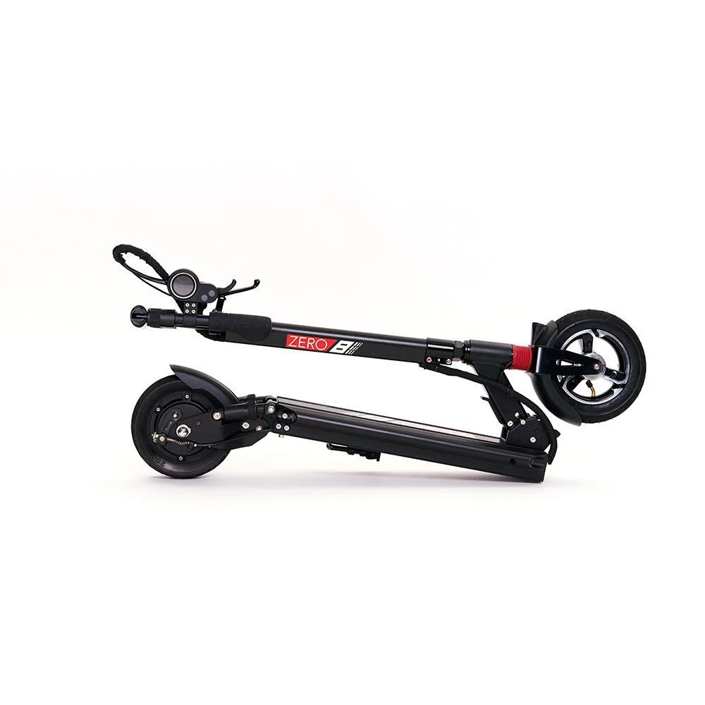 Электросамокат Starway Zero T8 имеет 8 дюймовые колеса, амортизация переднего и заднего колес позволяет передвигаться по бездорожью. На переднем крыле и на деке с четырех сторон установлены светодиодные фары. Это позволяет передвигаться даже ночью. Под правой рукой на руле, установлен информационный дисплей, на котором отражается основные показатели. Можно контролировать скорость движения, расстояние, уровень заряда аккумулятора.