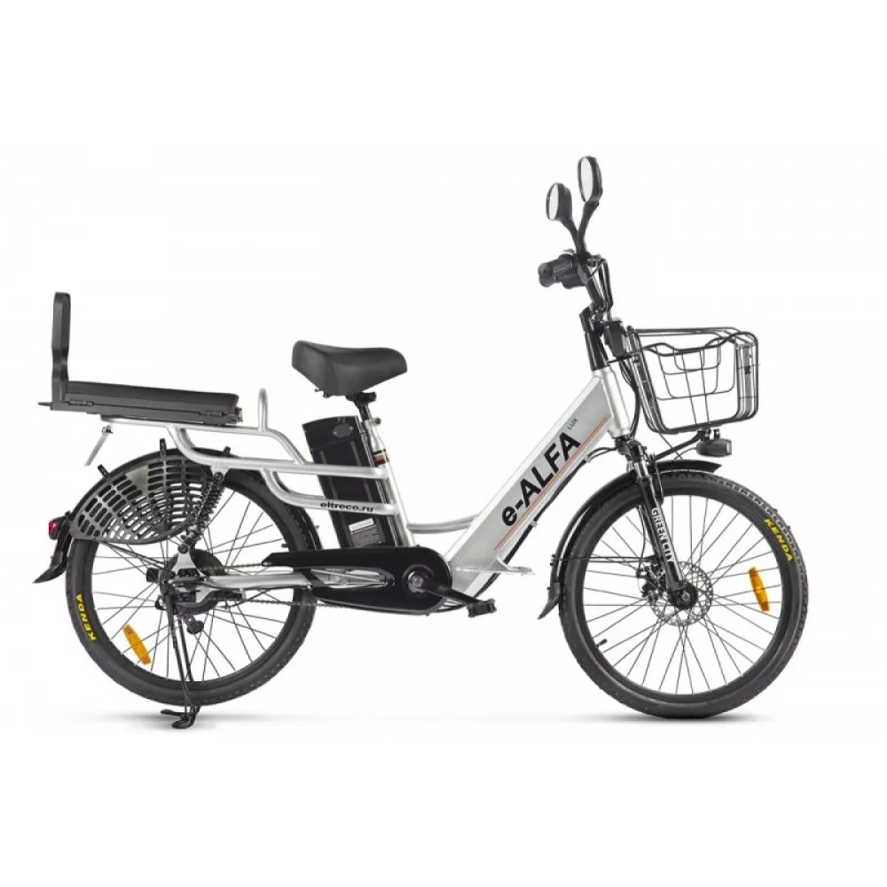 Велогибрид GREEN CITY e-ALFA LUX – Серебристый – лидер продаж нового сезона. Модель произведена с целью комфортных по городской местности. Наличие дополнительного сидения и корзины допускает перевозку пассажира и груза. Совершенные конструктивные характеристики, высокая грузоподъемность сделала модель популярной и востребованной в сегменте техники. Купить товар выгодно, по цене производителя предлагает наш интернет-магазин.