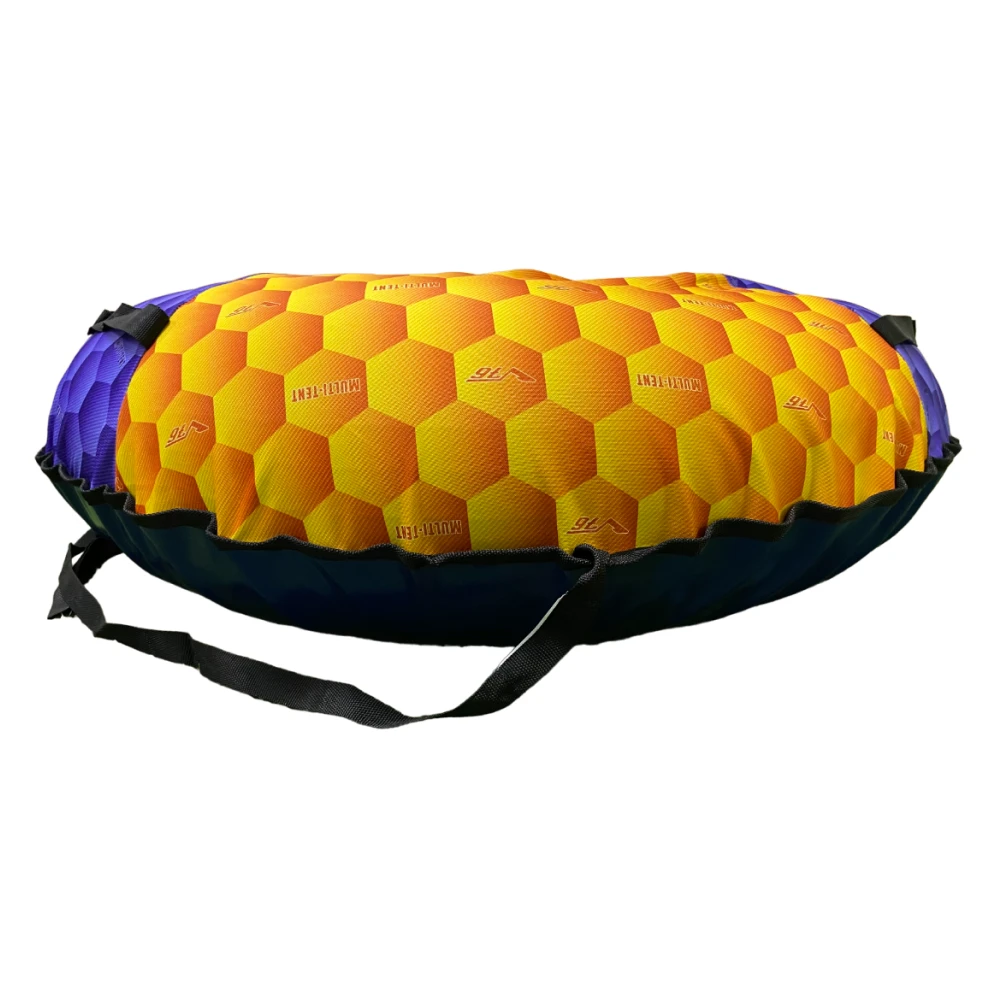 Рисунок с сотами в желто-фиолетовых цветах придает тюбингу уникальность и стиль. Он создает атмосферу веселья и радости, привлекая внимание своим оригинальным и ярким дизайном.